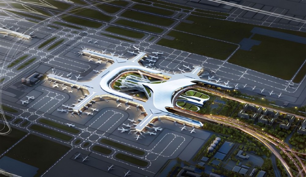 交通中心位于T1航站樓東側(cè),總面積約80萬平方米,自東向西。自上而下將機場航站樓、磁浮、高鐵、地鐵、長途車站、公交站、出租車上客點及社會停車庫等交通設施集約布局于一體。工程地下室抗拔樁采用機械連接竹節(jié)樁7萬米。